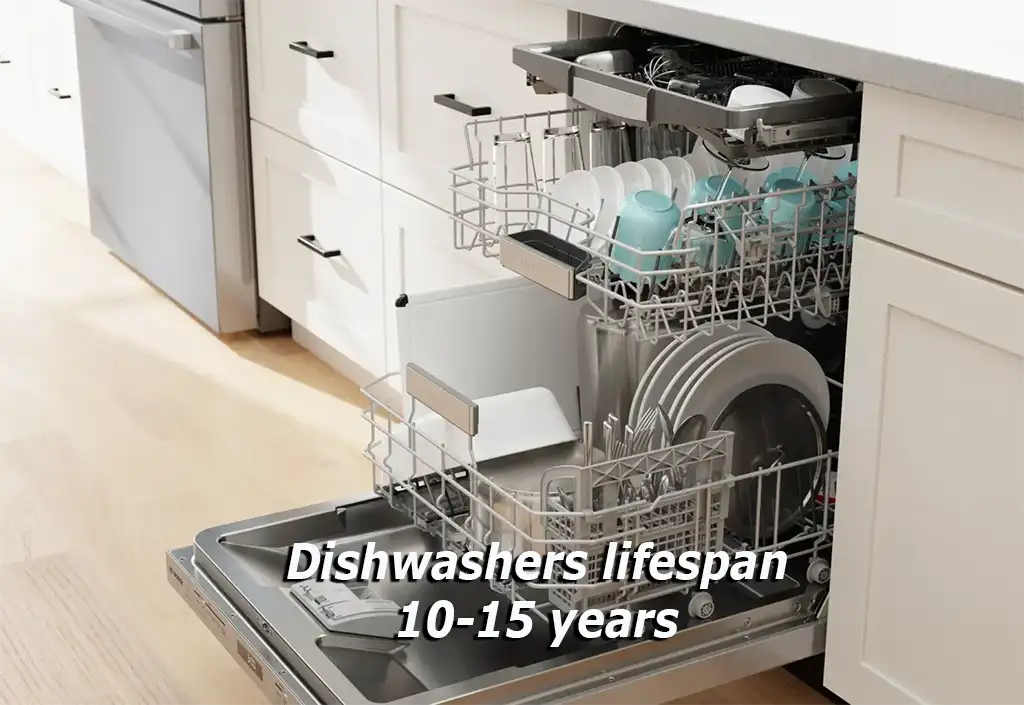 Den gennemsnitlige levetid for en opvaskemaskine er 10 til 15 år. Varmeelementerne slides hurtigst i opvaskemaskiner, især i områder med hårdt vand. For at sikre en lang levetid bruger opvaskemaskiner et særligt salt til at blødgøre vandet, hvilket forhindrer kalkaflejringer. Dette har igen en positiv effekt på højtrykspumpen, der skaber det nødvendige tryk til at sprøjte vandet.