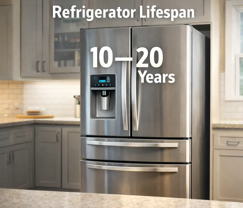 Levetiden for moderne køleskabe ligger normalt mellem 10 og 20 år, og modeller af højere kvalitet overstiger ofte dette interval. Et køleskabs holdbarhed afhænger i høj grad af kvaliteten af materialerne og samlingen. De vigtigste komponenter, der kan svigte med tiden, omfatter ismaskinen, kompressoren, kølesystemet, dørpakningerne og styreelektronikken.